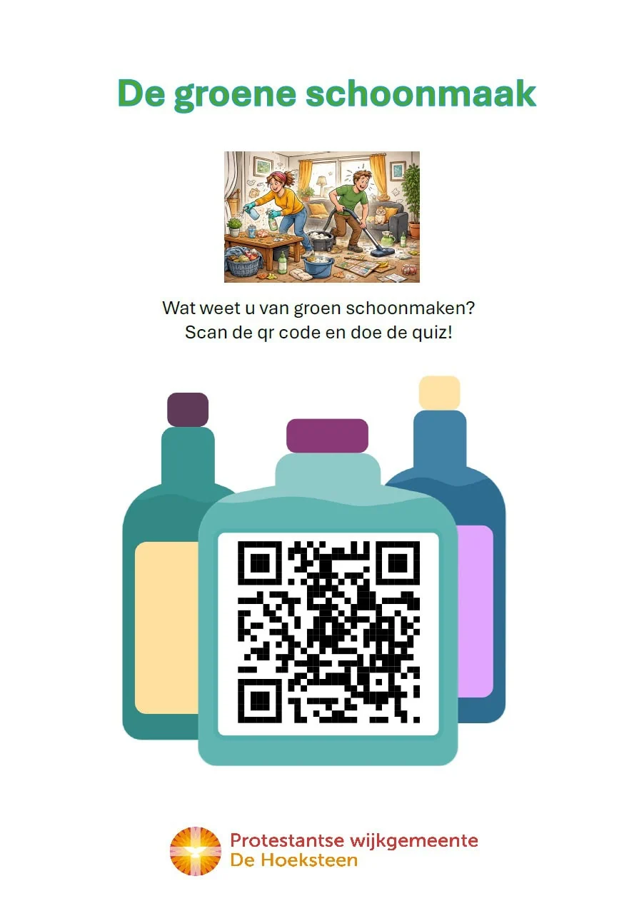 De Hoeksteen was al goed op weg: de koffie en thee werd al jaren verantwoord ingekocht, de energie voor het kerkgebouw kopen ze gezamenlijk groen in, en er wordt bewust gekozen voor gifvrije bloemen. Nu zet De Hoeksteen ook de stap naar milieuvriendelijk schoonmaken. Op zondag 19 april vierden de gemeenteleden van de Hoeksteen samen dat ze een Groene Kerk zijn.