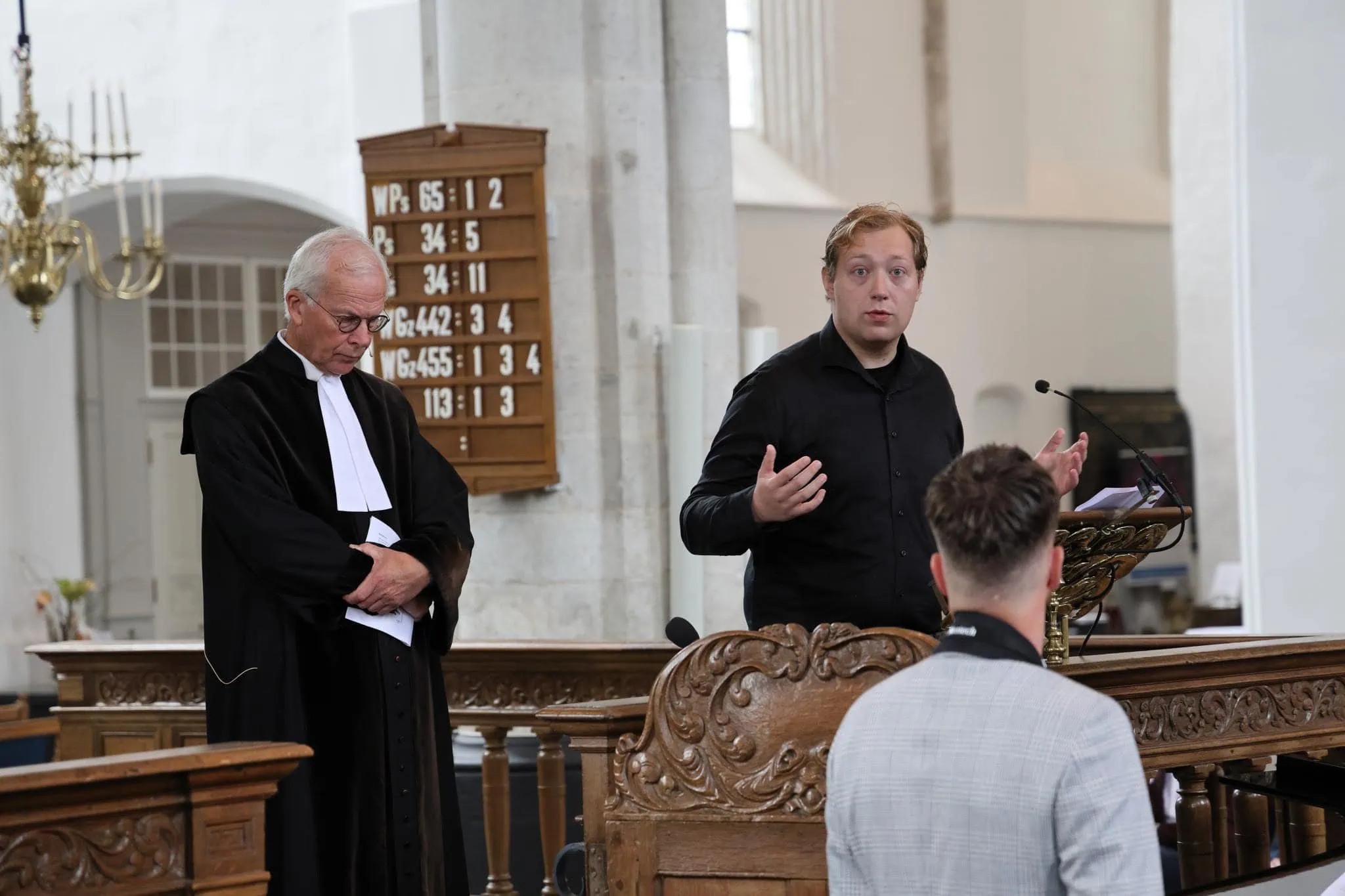 ‘Toen ik negen was, kreeg ik een Bijbel van mijn oma. Ik zat wel op een christelijke school, maar deed verder niet zoveel met het geloof.’ De Bijbel blijft een aantal jaren in de kast liggen, tot 2024. ‘Ik maakte een moeilijke periode door in mijn leven. En precies toen vond ik die Bijbel van mijn oma, ergens verstopt in een kast. Ik ben erin gaan lezen en merkte dat ik daar kracht en hoop uit haalde. Ik denk niet dat het toeval was dat ik die Bijbel juist nu vond en dat mijn oma die jaren geleden aan mij gaf.’ Ruben leest steeds meer in zijn Bijbel en gaat bidden. ‘God zelf zocht contact met mij en ik zocht contact met Hem.’ Ruben besluit om online op zoek te gaan naar een kerk. ‘Ik wist van katholieken en protestanten, maar verder had ik echt geen idee. Ik ben een avondje gaan googelen en kwam bij de Joriskerk uit. De website en uitstraling van de kerk trokken mij aan. Ik studeer geschiedenis, dus het mooie, oude gebouw sprak mij natuurlijk ook aan.’