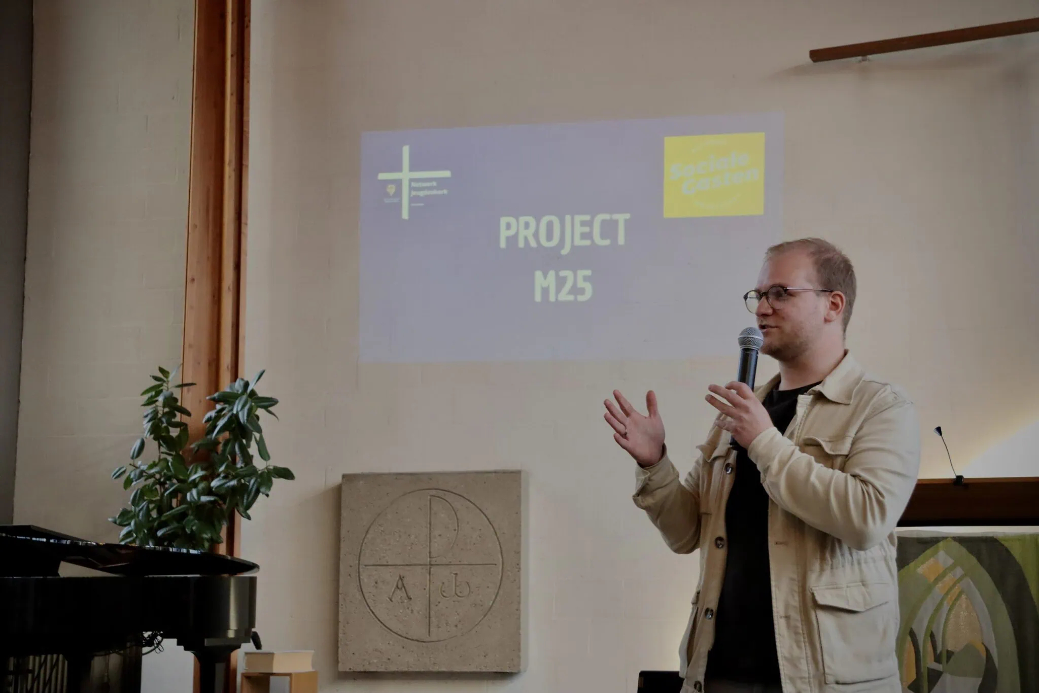 Vanuit de Raad van Kerken werd de titel M25 aangedragen. Op diverse plekken in het land zijn er projecten geweest met deze naam, geïnspireerd vanuit Mattheüs 25. We kozen ervoor om niet alleen de handen uit de mouwen te steken maar ook een moment van reflectie in te bouwen en de interkerkelijke band te versterken. Zo ontstond de drieslag: samen doen, samen vieren, samen eten.